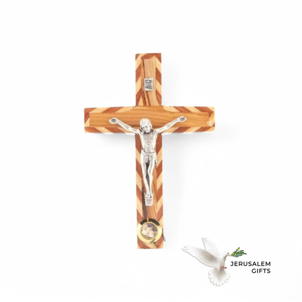 6.1″ Jerusalem Wall Crucifix, Hand Made Cross from Olive Wood in the Holy Land