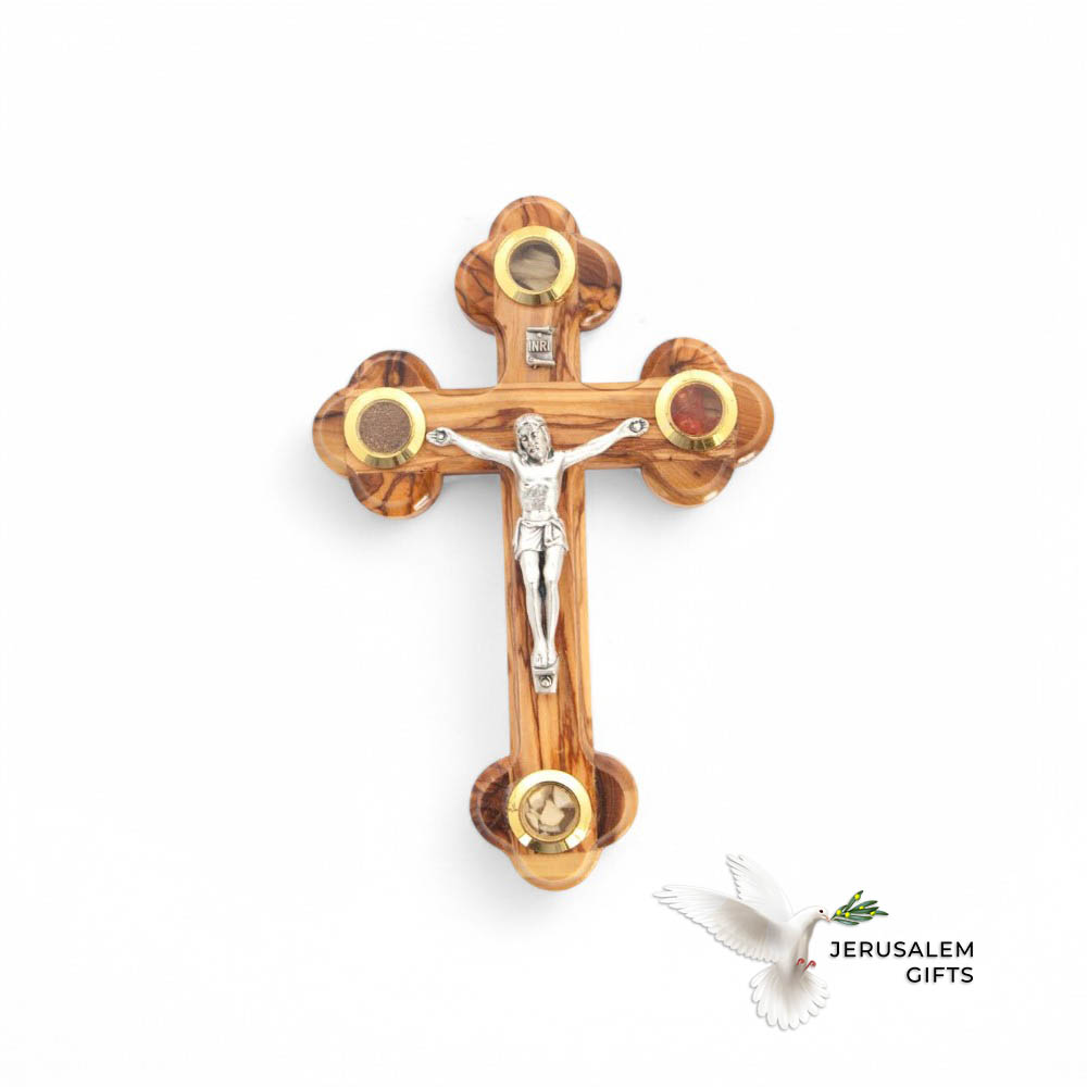 7.1″ Crucifix, Wooden Cross with Soil from Holy Land in Capsule