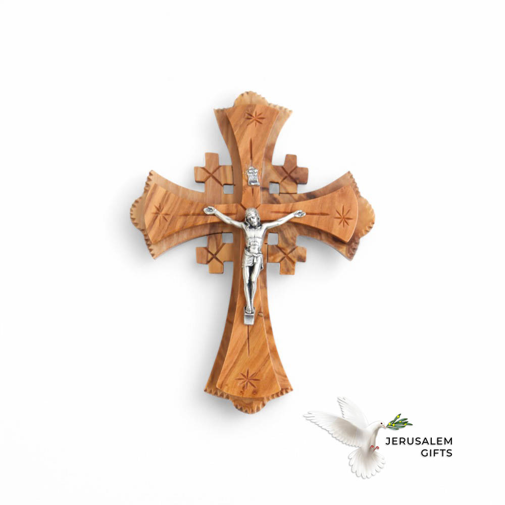 6.1" Jerusalem Wall Crucifix, Hand Made Cross from Olive Wood in the Holy Land6.1″ Jerusalem Wall Crucifix, Hand Made Cross from Olive Wood in the Holy Land