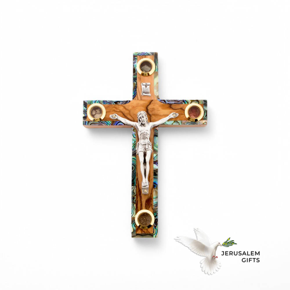 6.3″ Wall Crucifix, Cross with Olive Wood and Mother of Pearl