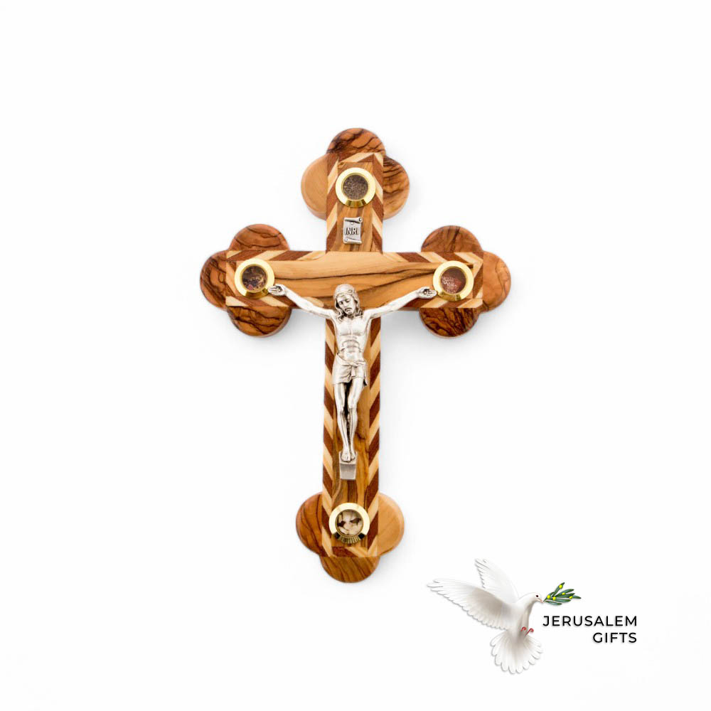 7" Wood Wall Crucifix with Mother of Pearl 4 Souvenirs and 14 Stations of Cross on Back7″ Wood Wall Crucifix with Mother of Pearl 4 Souvenirs and 14 Stations of Cross on Back