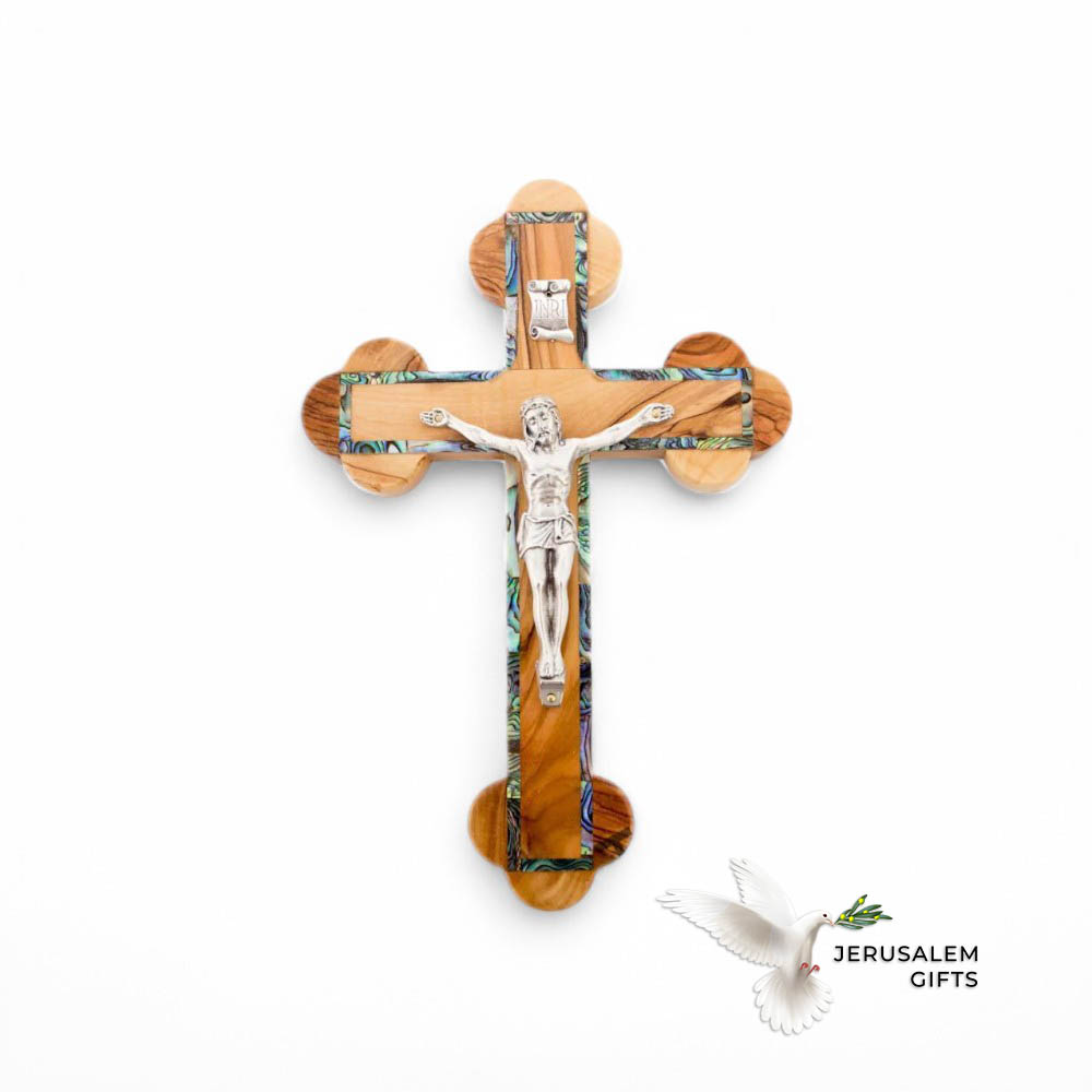 6.3″ Wall Crucifix, Cross with Olive Wood and Mother of Pearl