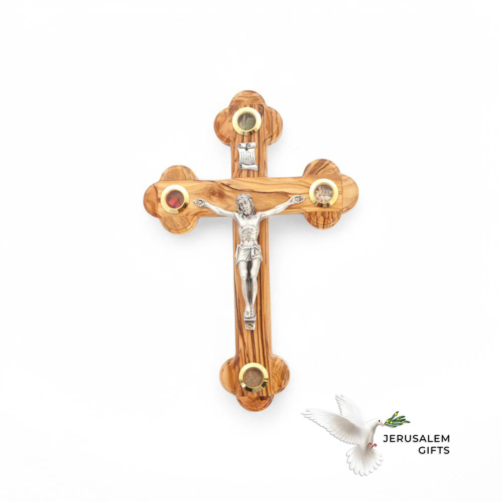 8.9″ Crucifix, Budded Cross 4 Holy Essences from Holy Land Olive Wood, 8.9″