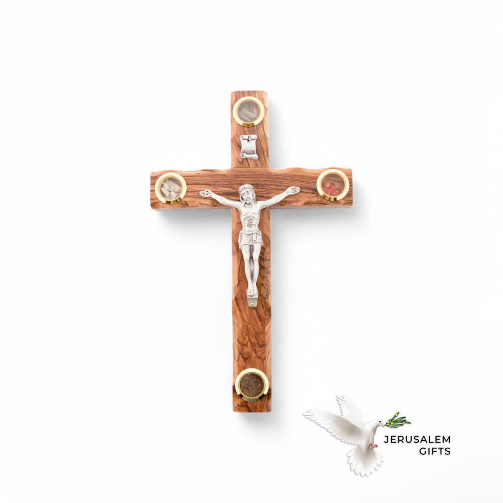 9.8″ Crucifix, Olive Wood with 4 Essences in Capsules from Holy Land
