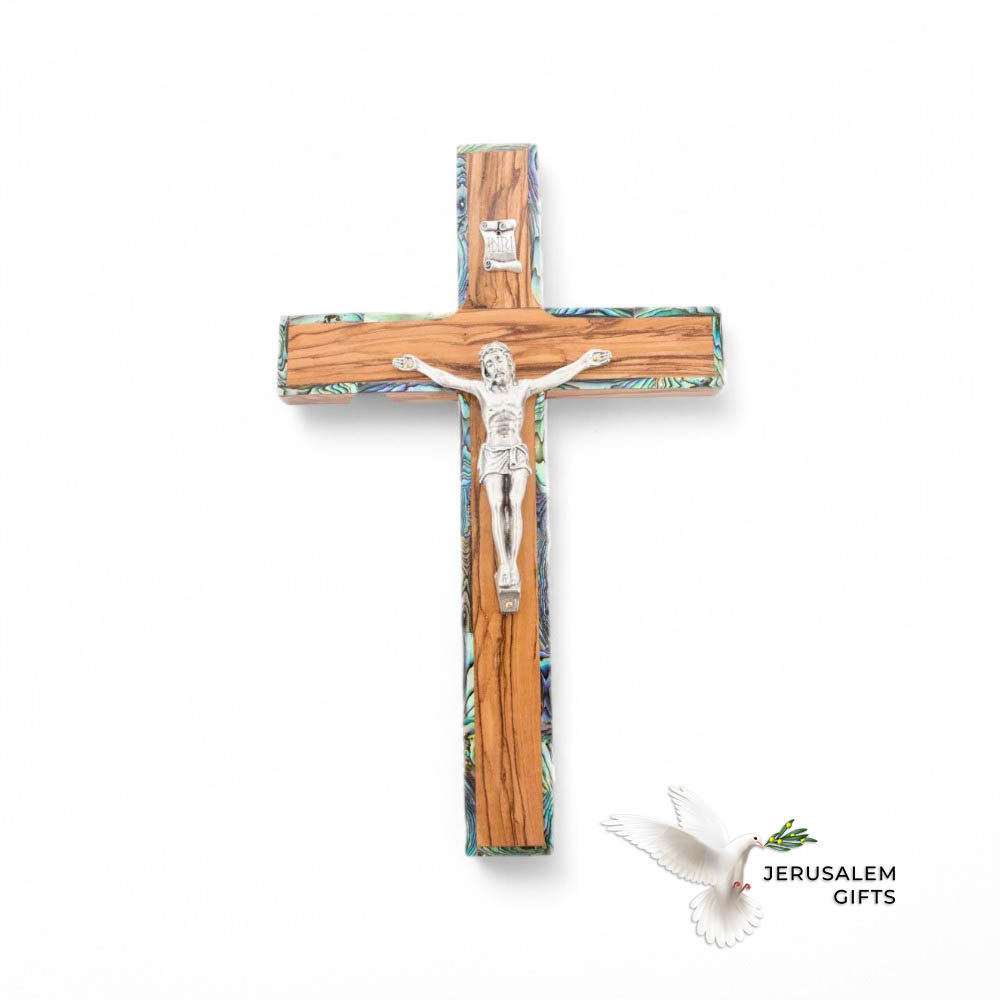 9.8″ Crucifix, Wooden Mother of Pearl with Olive Wood Crucifix