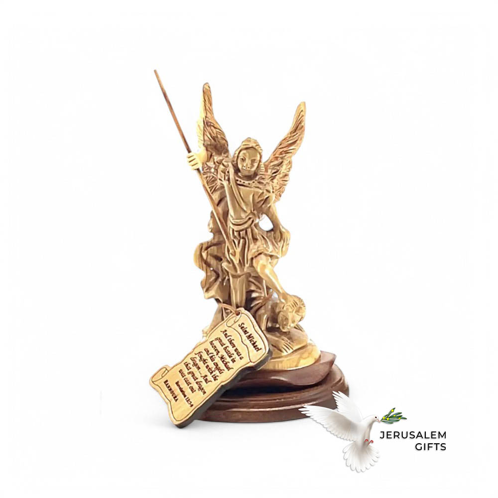 Archangel Michael Sculpture with Wings, 6.9" Carving from Olive Wood quantity