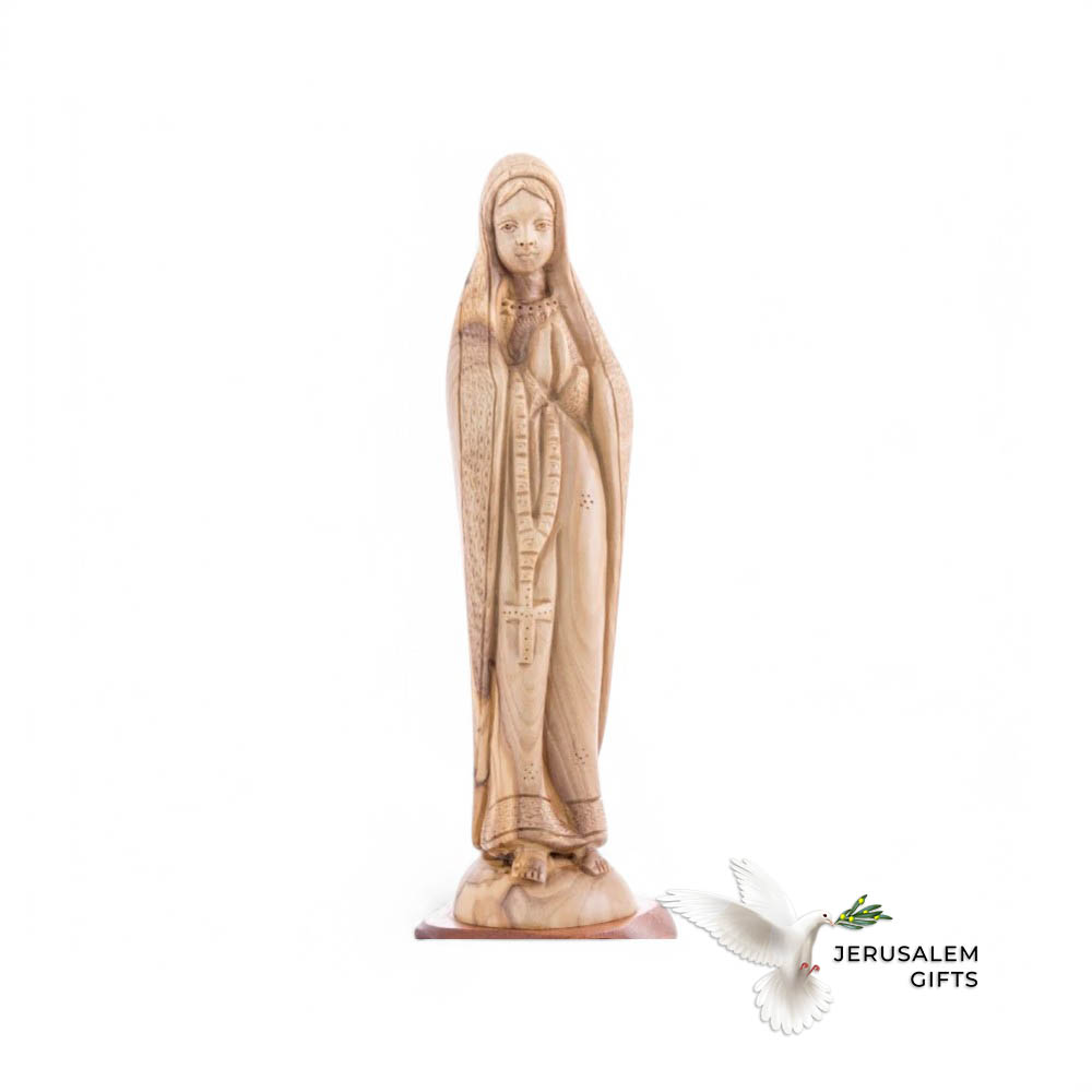 Blessed Mother Holding a Rosary, 10″ Olive Wood Carving Statue from Bethlehem