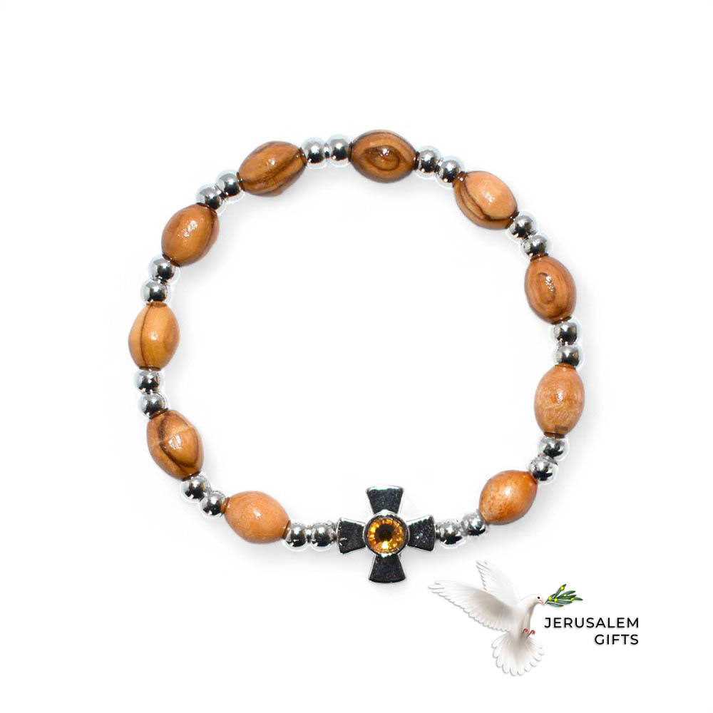 Bracelet with Citrine Birthstones, Wooden Oval 9 6 mm Beads