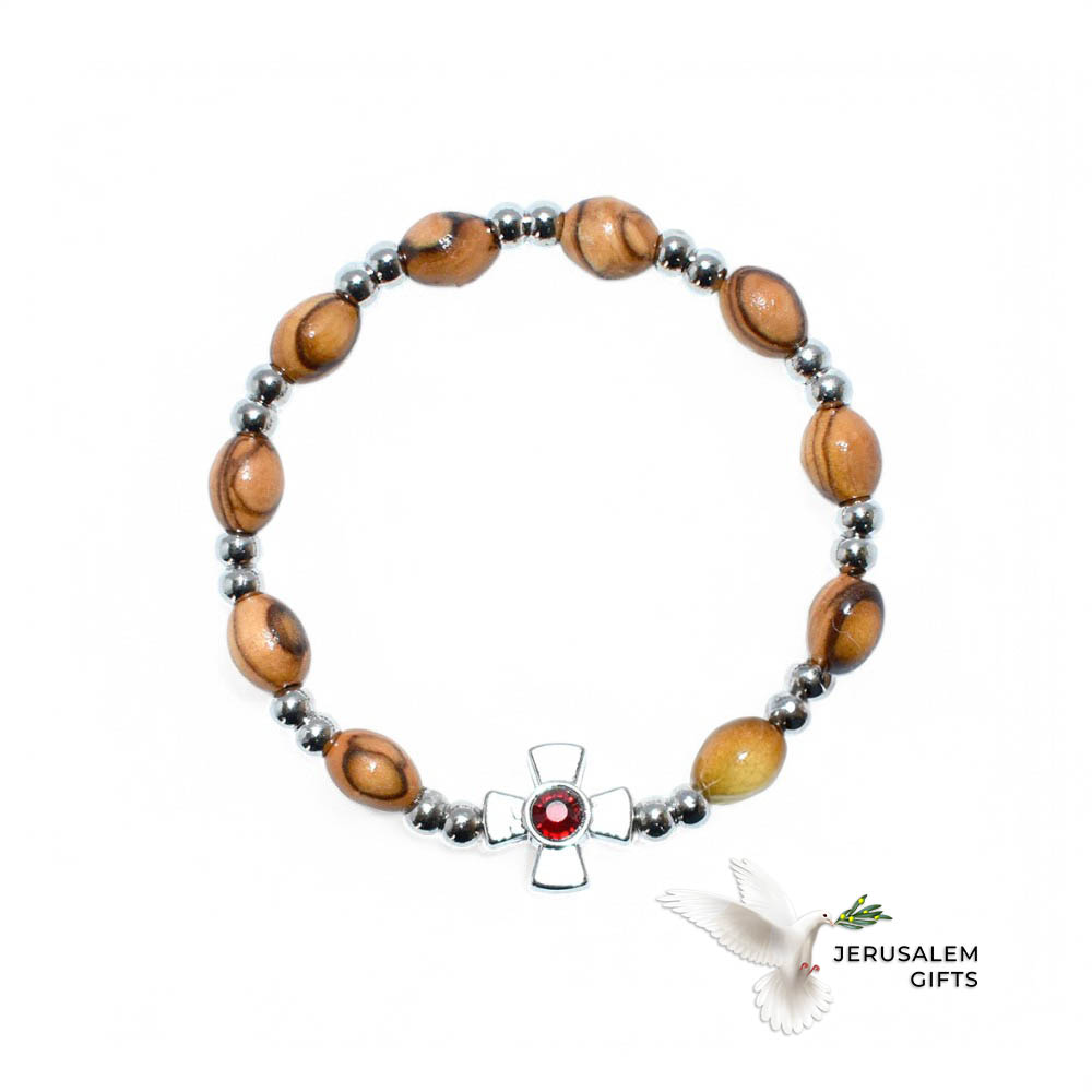 Bracelet with Garnet Birthstones, Olive Wood Oval 9 6 mm Beads