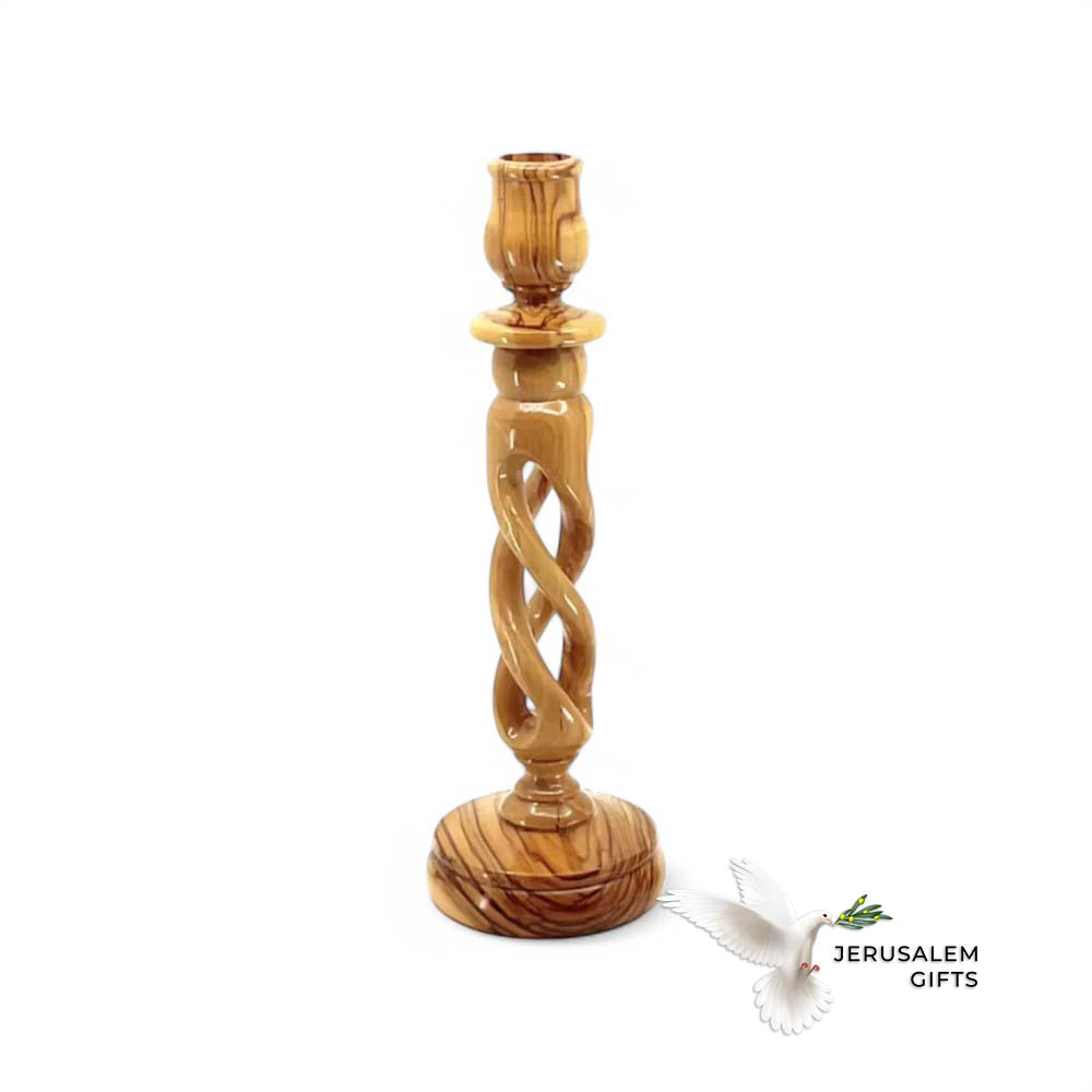 Candle Holder with Hollow Twist, 9.3″ Tall from Holy Land Olive Wood
