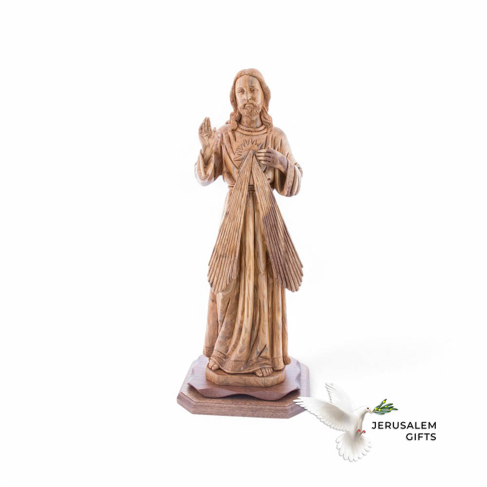 Carved Olive Wood Divine Mercy's Statue, 22.4" Sacred Heart CarvingCarved Olive Wood Divine Mercy’s Statue, 22.4″ Sacred Heart Carving