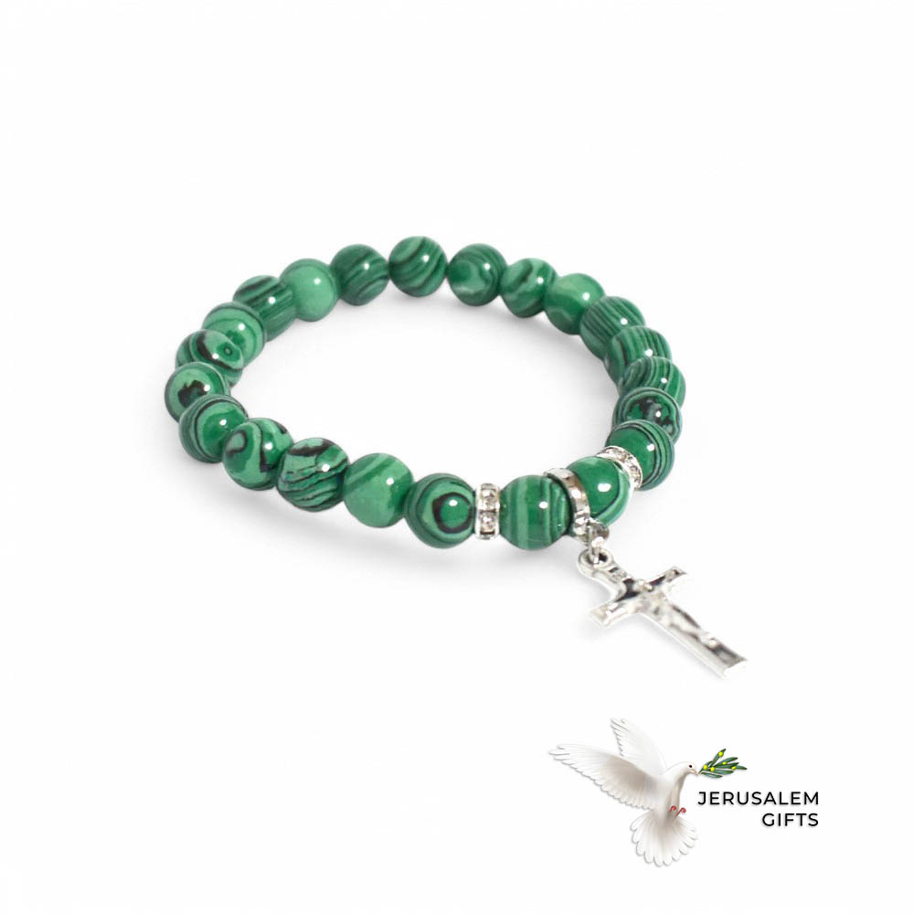 Christian Prayer Bracelet with a Crucifix, 8mm Green Stone CoralBeads quantity