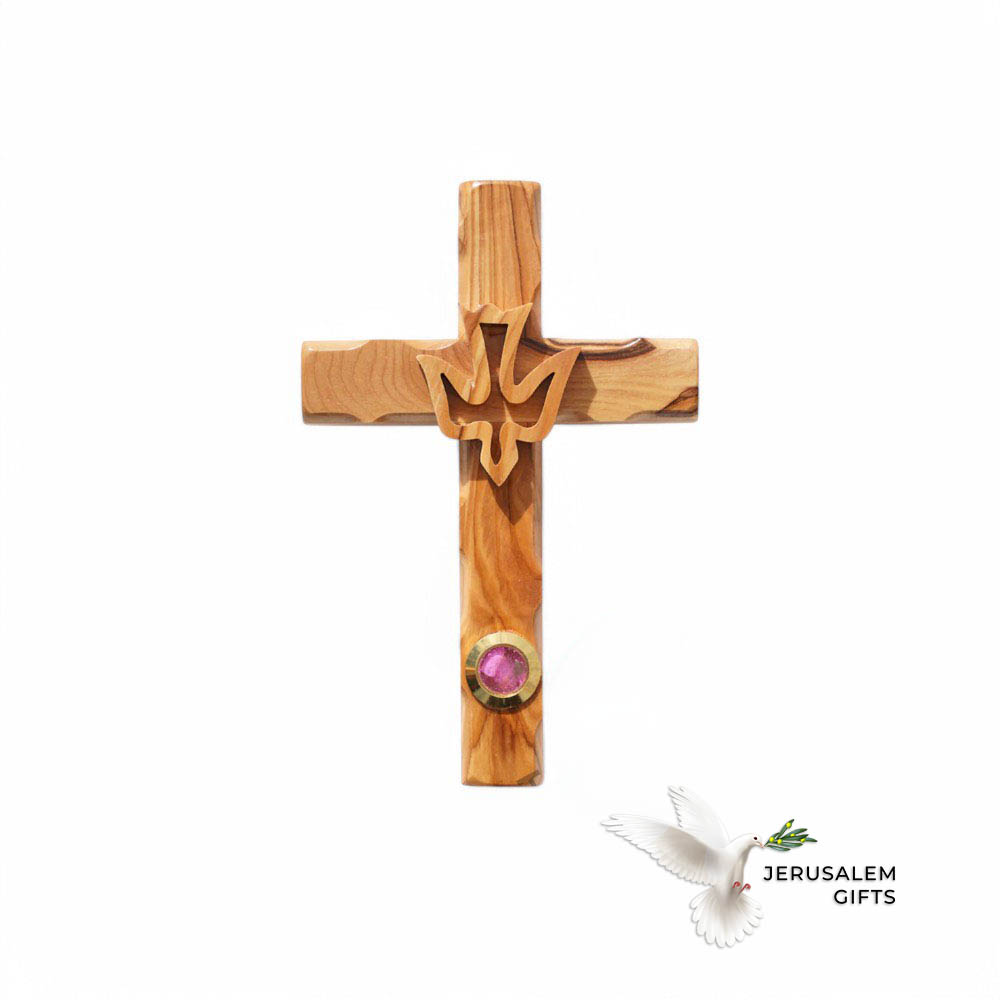 Cross with Holy Spirit Dove, 6′ Holy Land Olive Wood