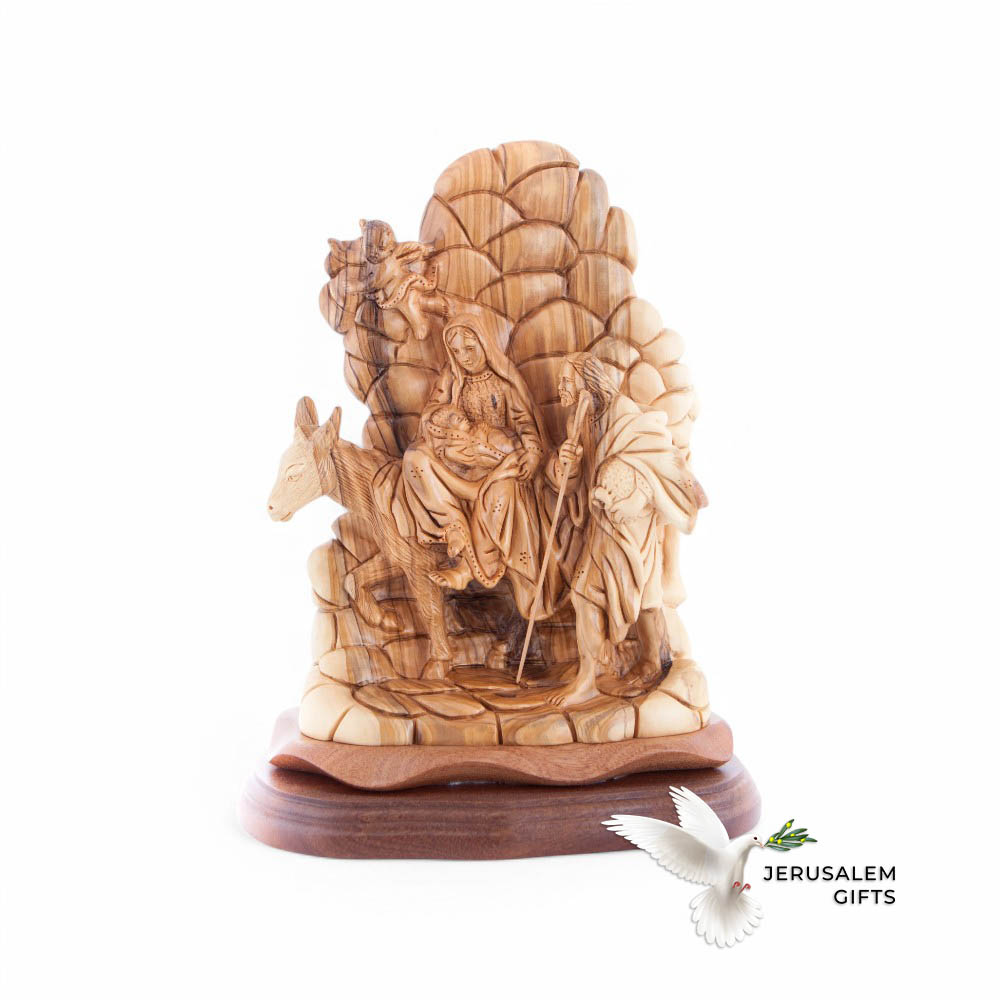 Flight into Egypt, 11″ Masterpiece Sculpture from Holy Land Olive Wood