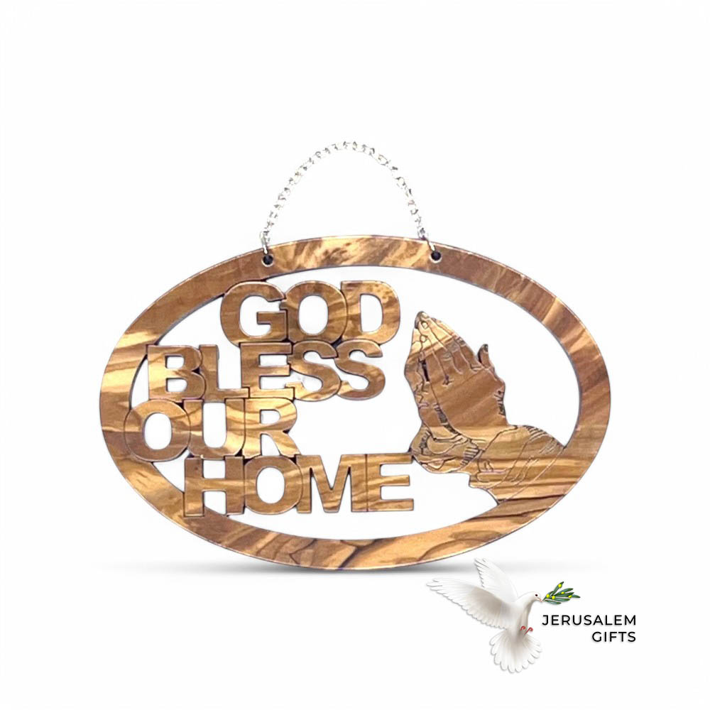 God Bless Our Home Christmas Ornament, Olive Wood from Bethlehem, 5.9″