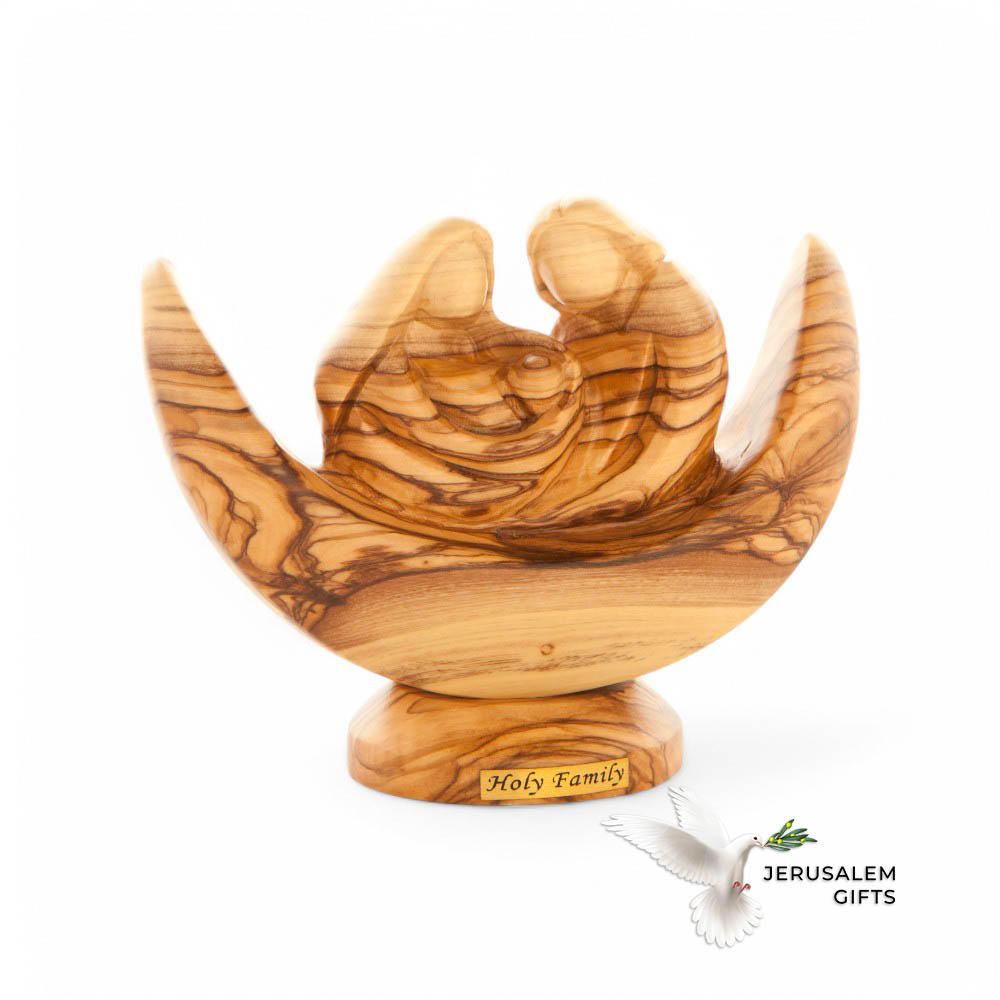 Holy Family “Moon Shaped” Carving Figurine, 4.5″ Olive Wood from Holy Land