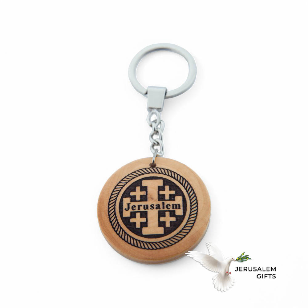 Jerusalem Cross Keychain, Olive Wood from Holy Land