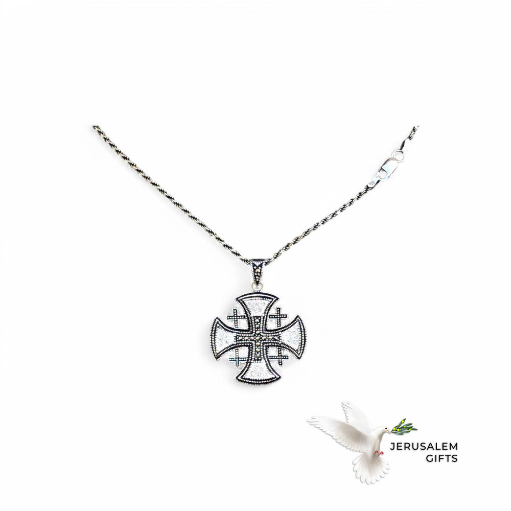 Jerusalem Cross Necklace with Gemstones (L)Sterling Silver Alisee Pattee