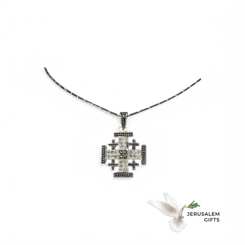Jerusalem Cross Necklace with Gemstones (L), Sterling Silver