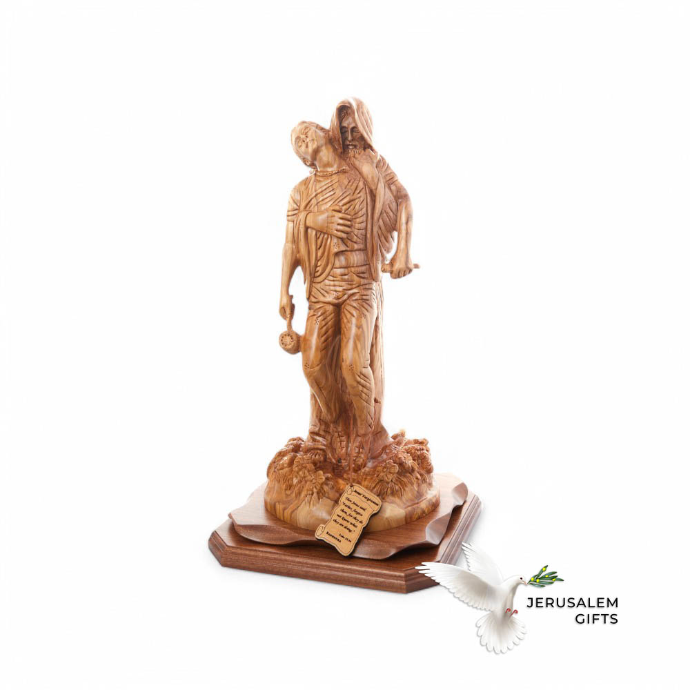 Jesus Christ “Forgiveness” Statue, 19.3″ Carved Masterpiece, Holy Land Olive Wood
