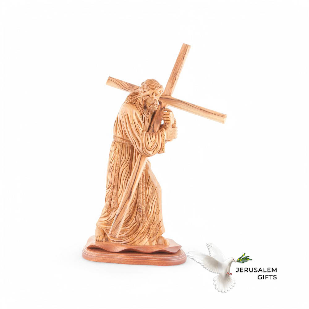 Jesus Christ "Holding Cross" Wooden Sculpture 16.9" -Photoroom.jpg