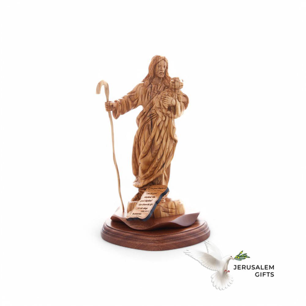Jesus Christ, “The Good Shepherd” , 10.6″ Carved Wooden Statue From the Holy Land