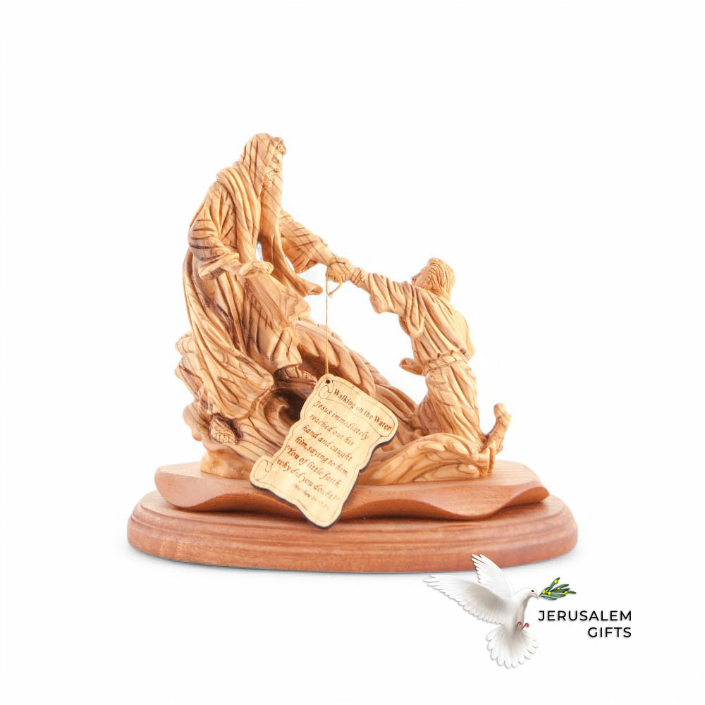 Jesus Christ Walks on Water, 10″ Wood Carved Sculpture from the Holy Land