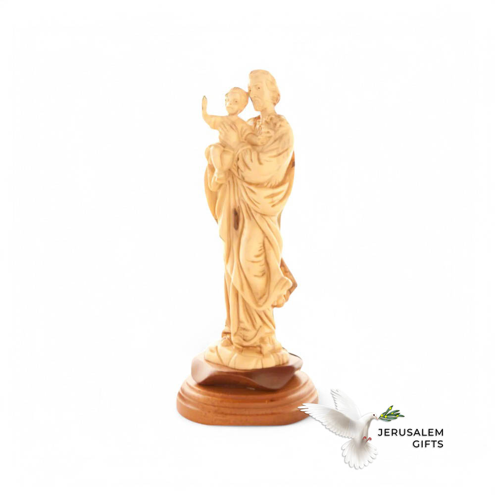 Joseph with the Holy Child Jesus Christ, 9.4″ Olive Wood Hand Carved Statue From Holy Land