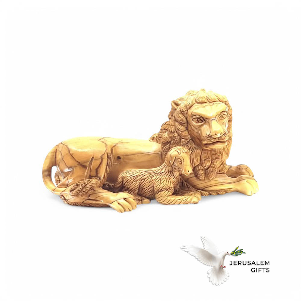 Lion with Lamb Carving, 7.9″ Long Olive Wood from Holy Land