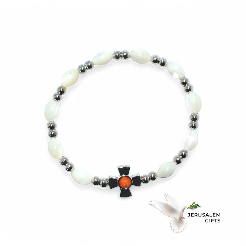 Mother of Pearl Bracelet 8 x 6mm Beads (Orange Crystal Stone)