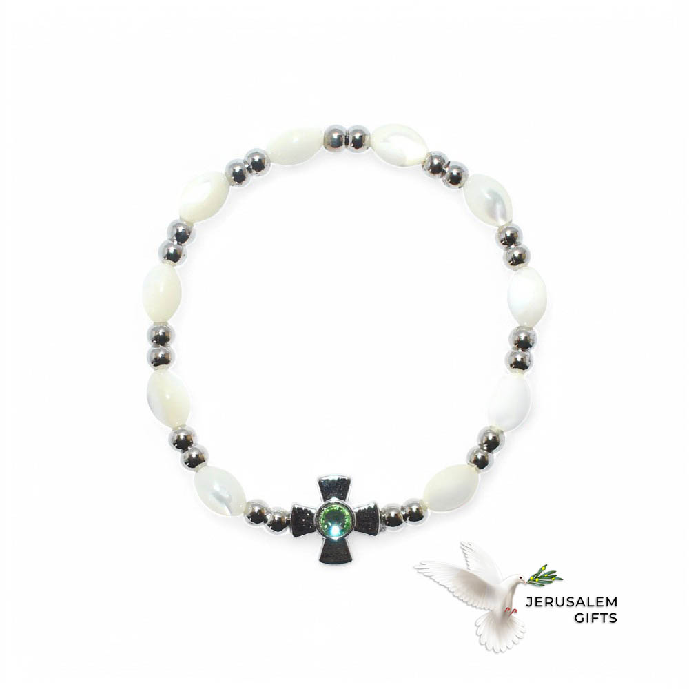 Mother of Pearl Bracelet 8 x 6mm Beads (Peridot Crystal Stone)