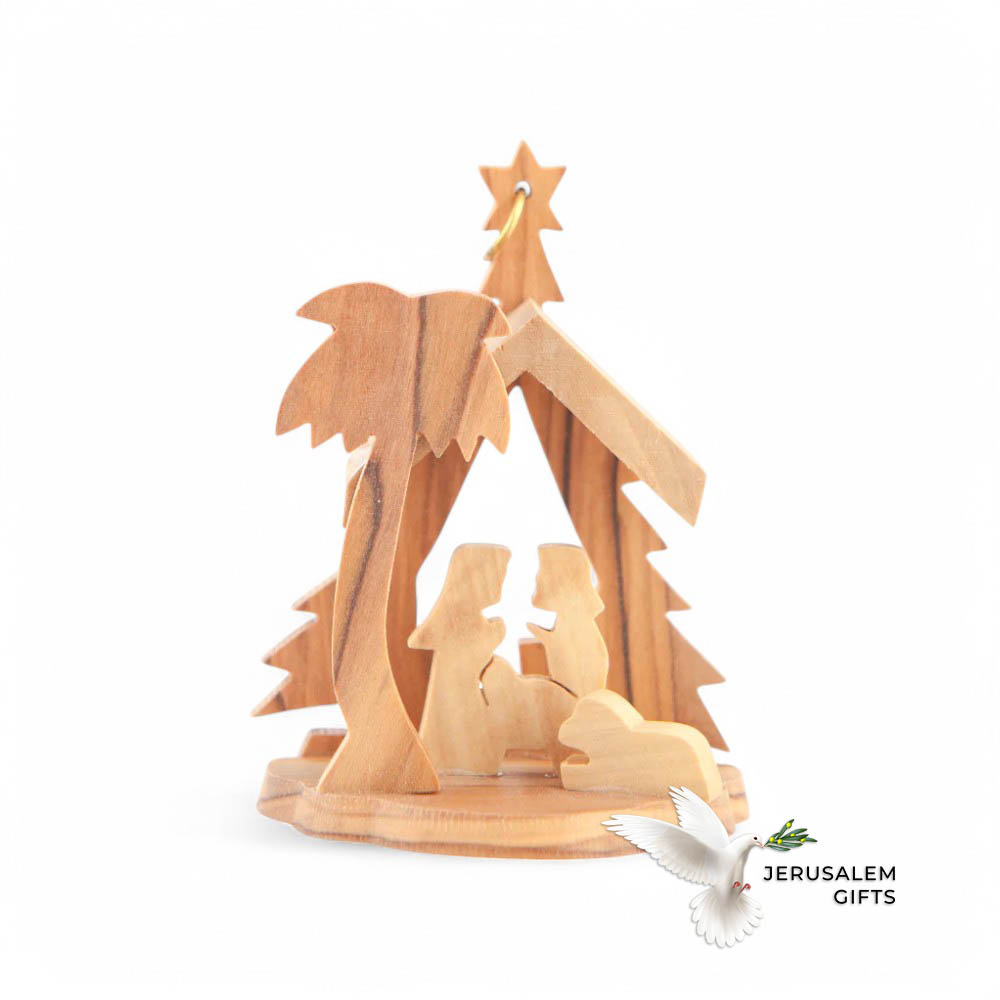 Nativity Scene Ornament, 3.25″ Olive Wood from Bethlehem