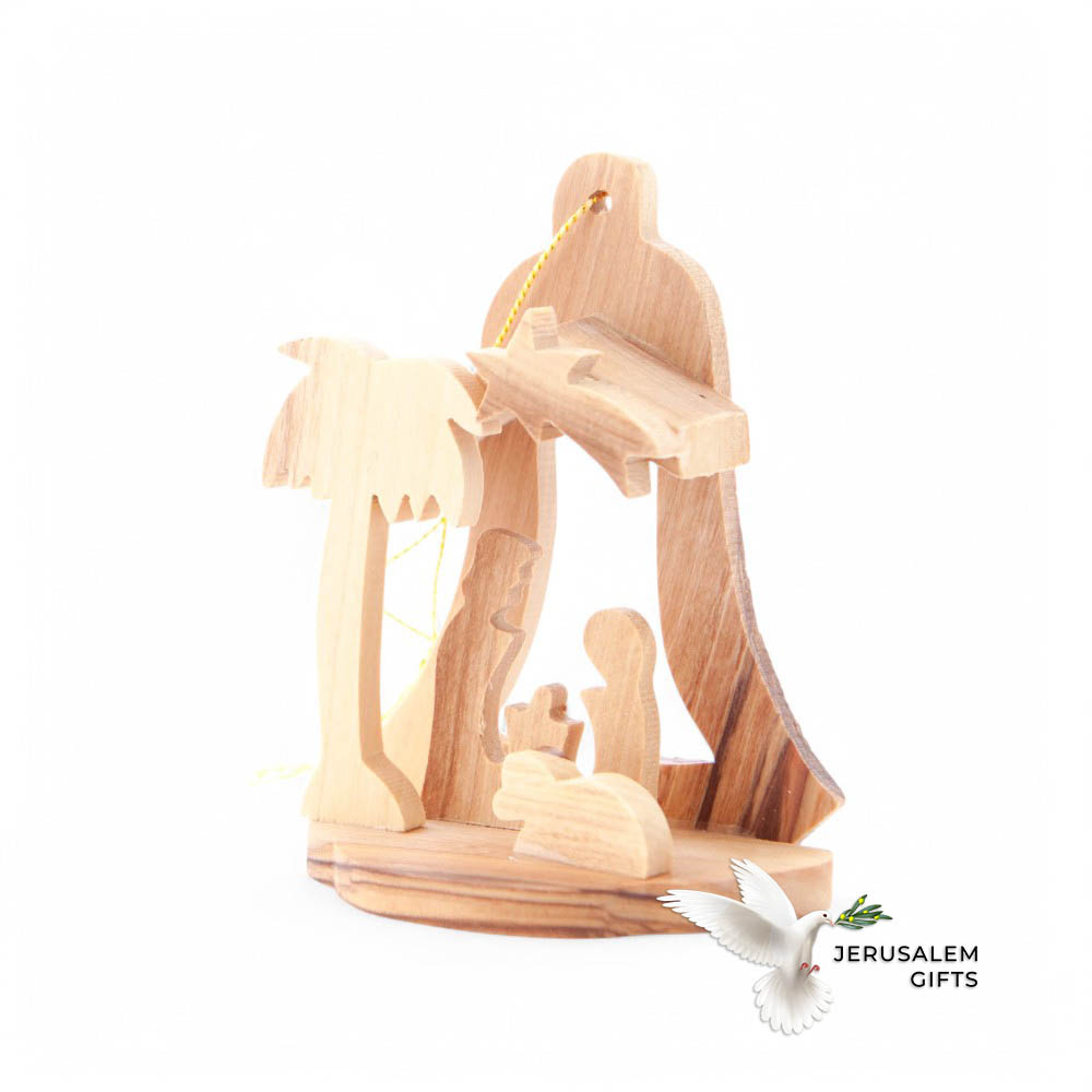 Nativity Scene Ornament (Angle Engraved Background) Olive Wood from Bethlehem