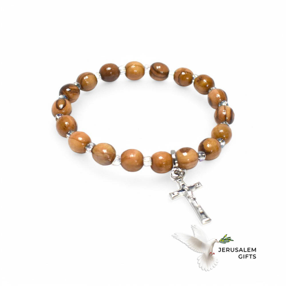 Olive Wood 6mm Beads Bracelet with Crucifix Pendant quantity