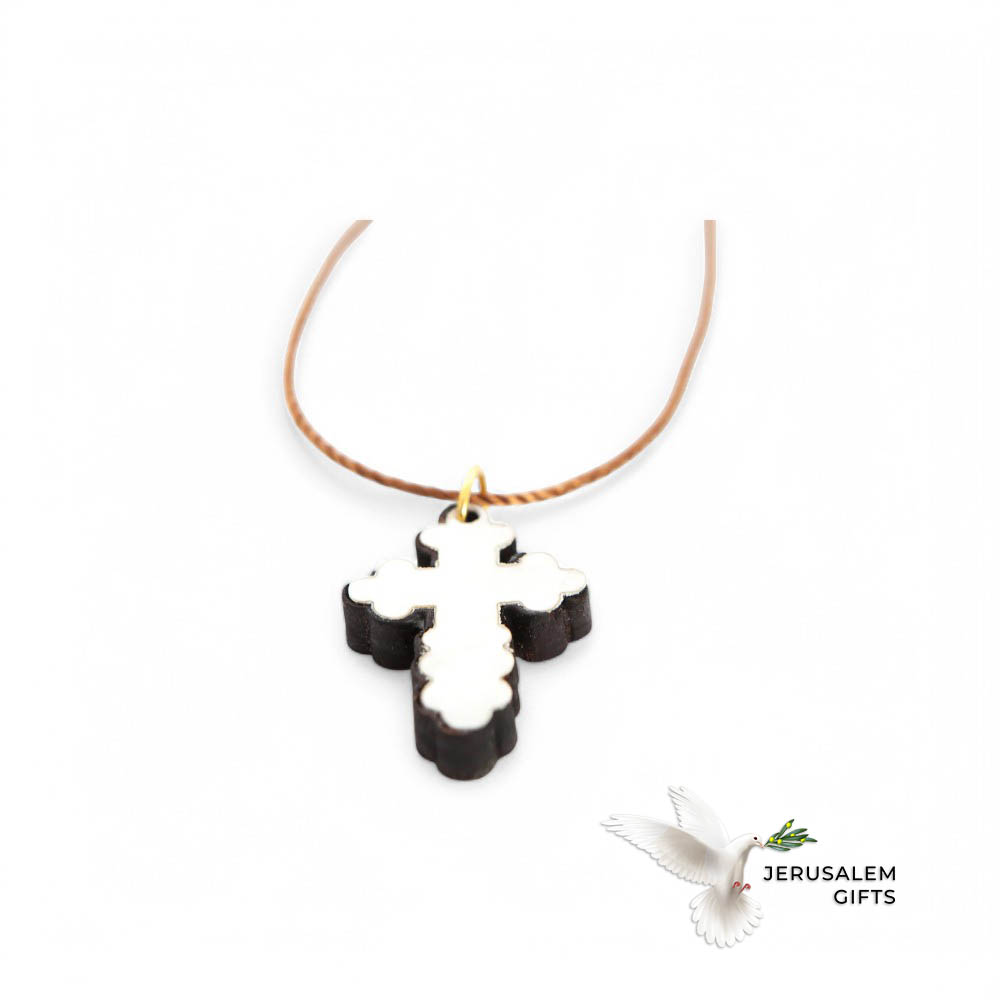 Jerusalem Cross Necklace (Olive Wood and White Mother of Pearl)