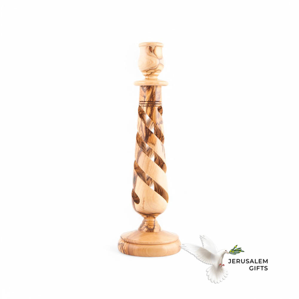 Olive Wood Candle Holder with Hollow Twist, 10″ Tall
