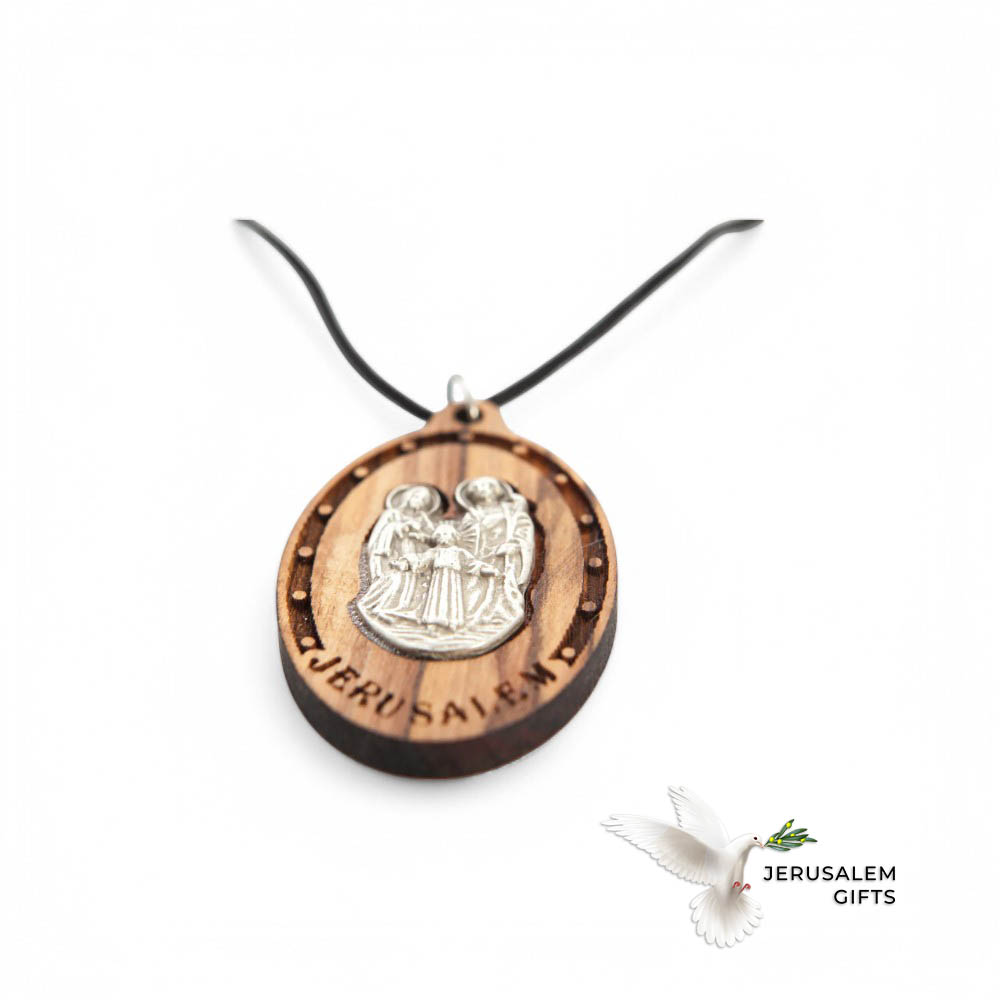 Jerusalem Cross Necklace with a Bead (Olive Wood and Colorful Mother of Pearl)