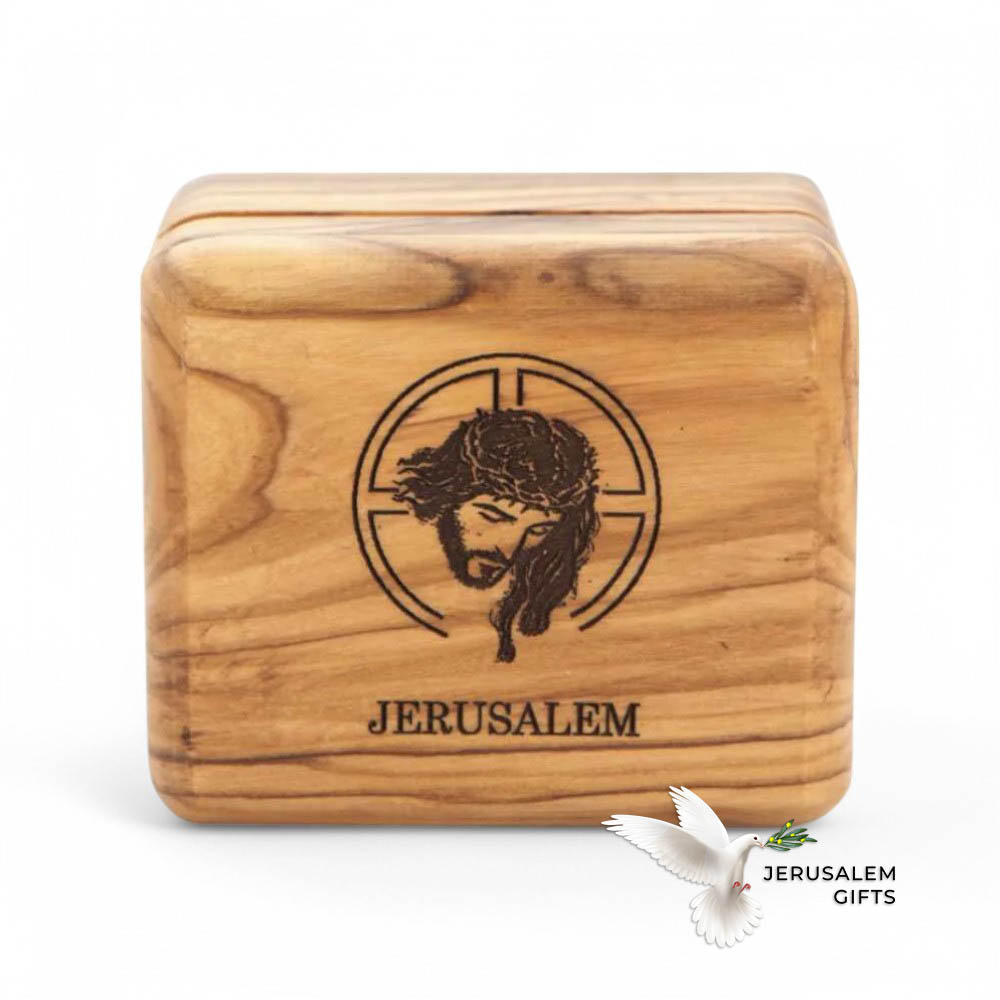 Olive Wood Rosary Box with Jesus Christ image Engraved Jerusalem Holy Land Olive Wood
