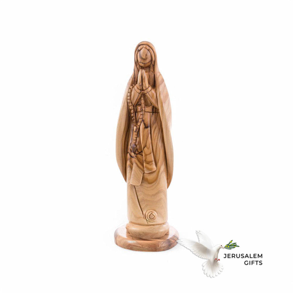 Our Lady of Lourdes, Virgin Mary Olive Wood Carving, 12.8′ Statue from Bethlehem