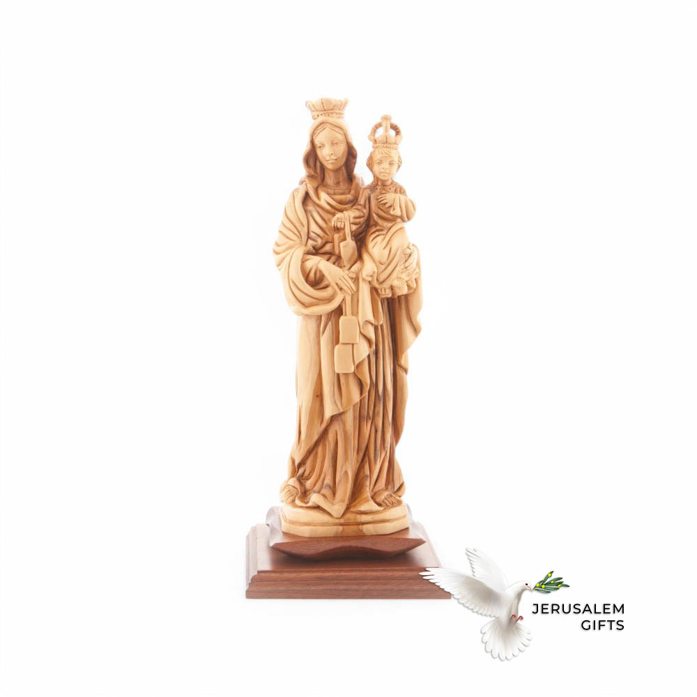 Our Lady of Mount Carmel, Virgin Mary Statue, 12.2″ Olive Wood Carving Statue from Bethlehem