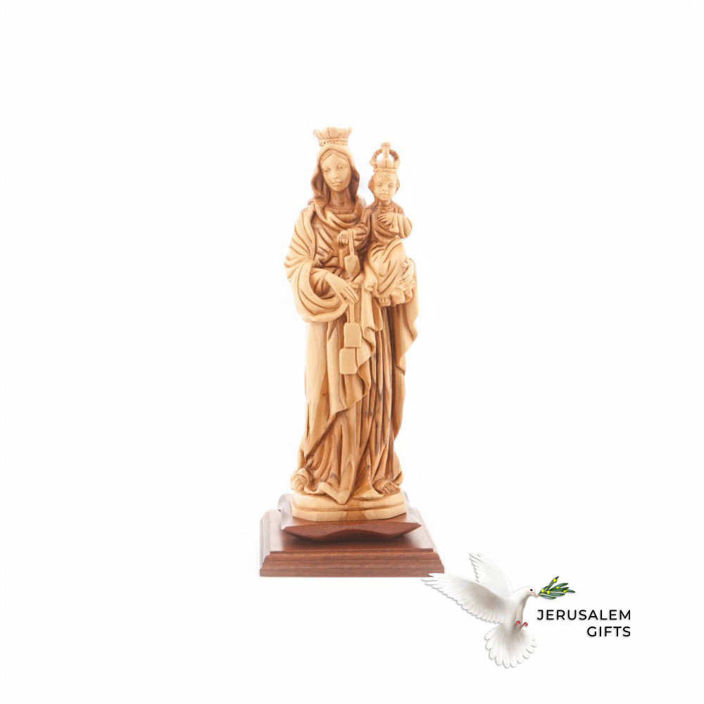 Our Lady of Mount Carmel, Virgin Mary Statue, 12.2″ Olive Wood Carving Statue from Bethlehem
