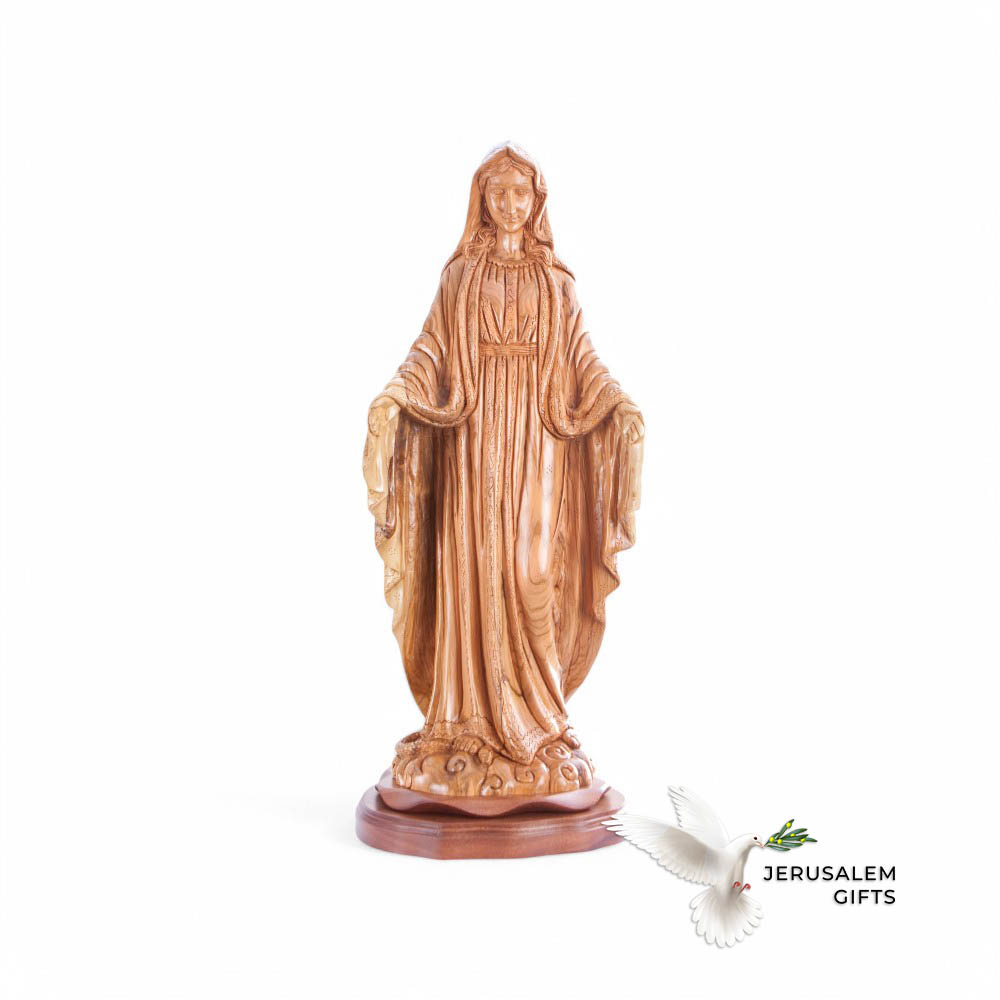 Our Lady of the Grace, Virgin Mary Masterpiece, 31.5″ Olive Wood Carved Sculpture from the Holy Land