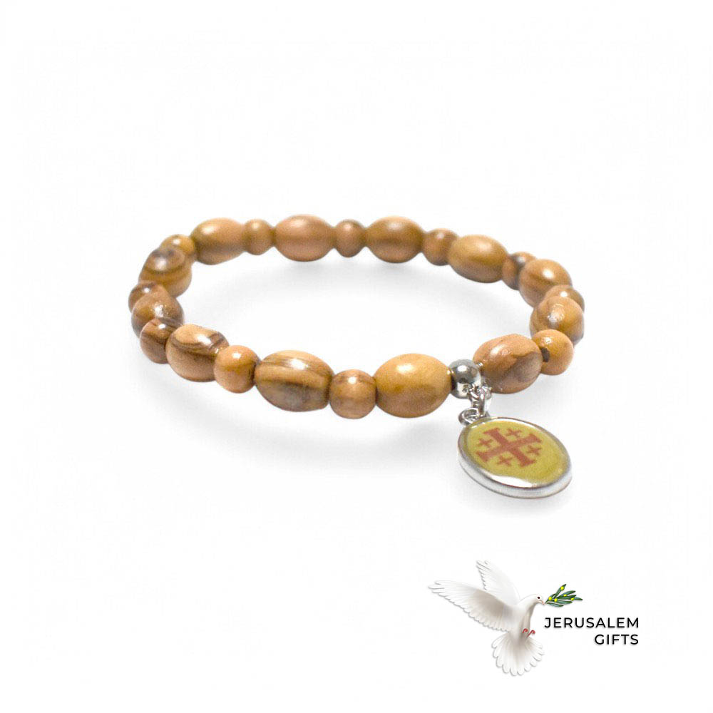 Tag: Oval Olive Wood 9 6 mm Beads Bracelet with Jesus Blessing Icon