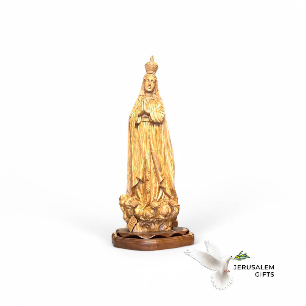 Rare "Our Lady Of Fatima" Virgin Mary Carved Masterpiece, 36.5" Statue, Olive Wood from Holy LandRare “Our Lady Of Fatima” Virgin Mary Carved Masterpiece, 36.5″ Statue, Olive Wood from Holy Land