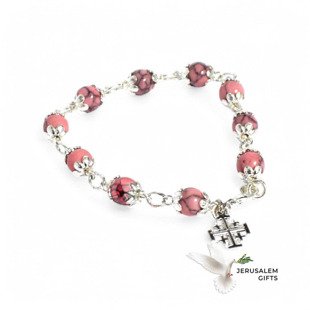 Bracelet with Latin Cross Pendant, Hematite Stone 8x 5mm
