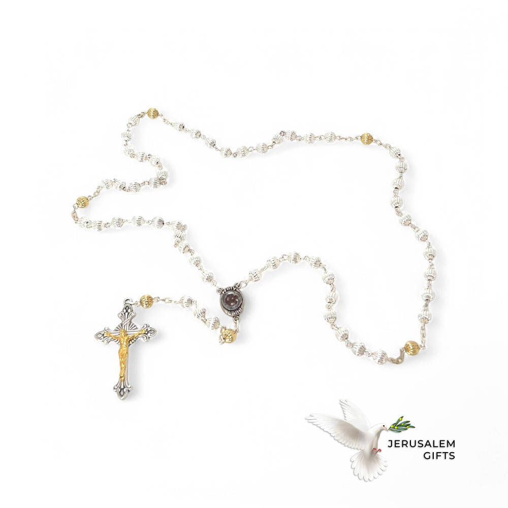 Rosary, Sterling Silver Plated Beads, 20.9″ Metal Chain with 2″ Crucifix