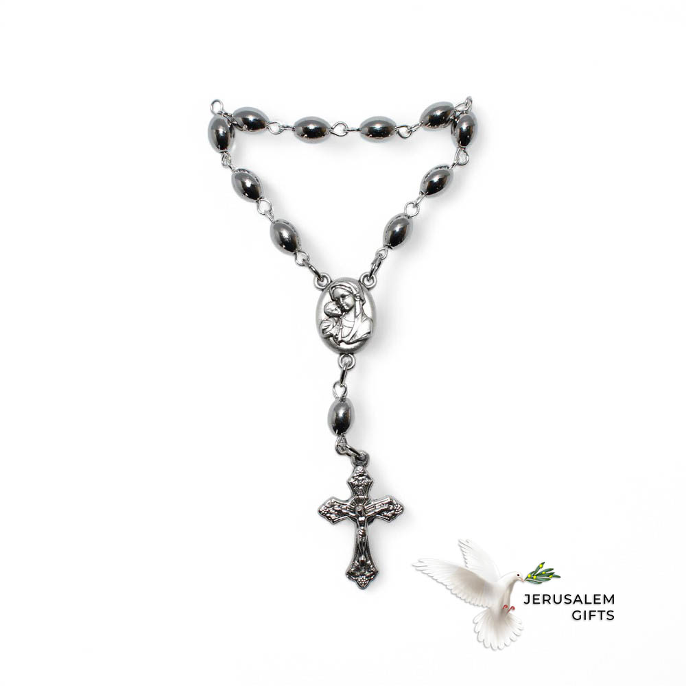 Finger Rosary with Holy Land Soil, Wooden 6 x 9mm Beads