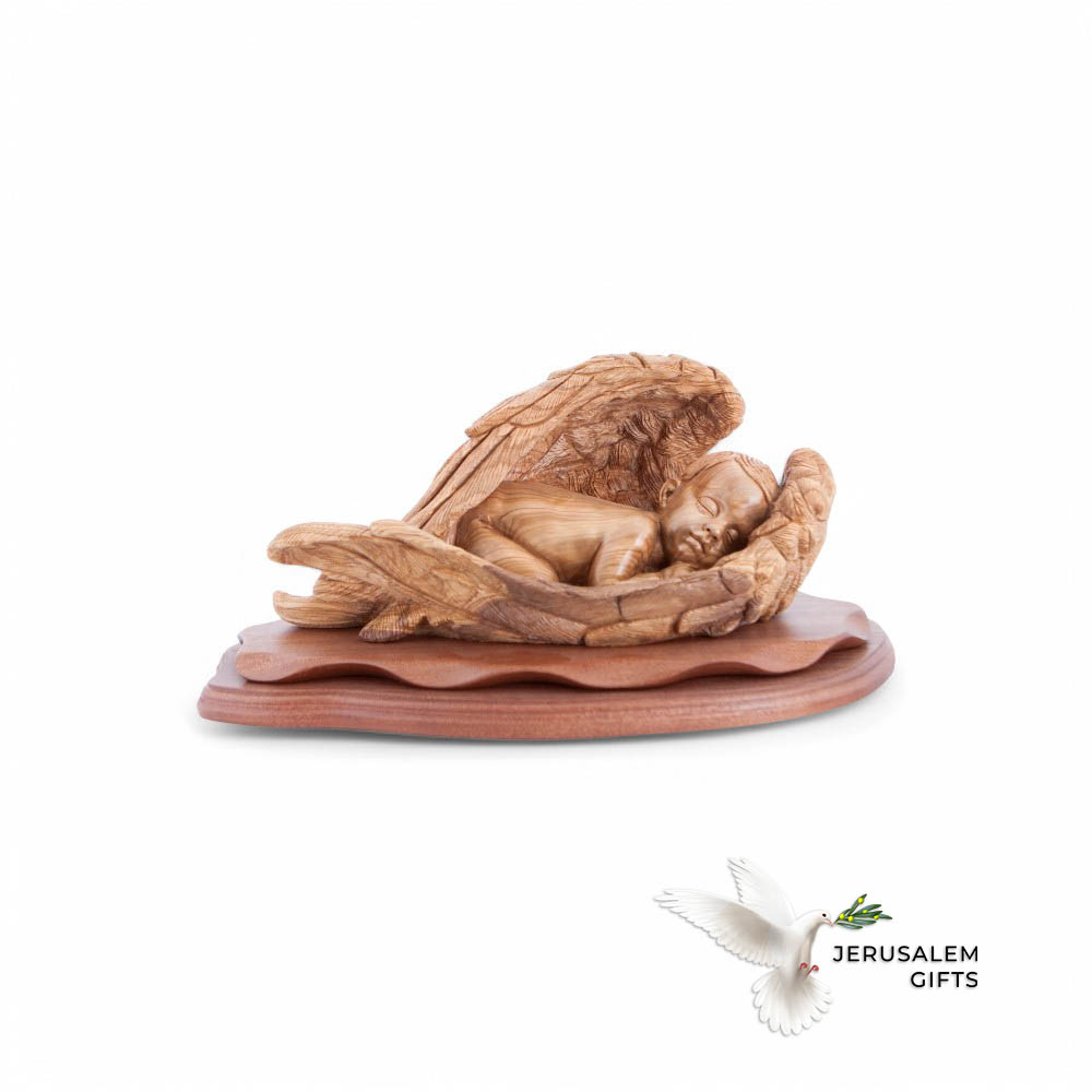 Sleeping Baby Jesus Angel with Wings 17.5″, Wooden Carving