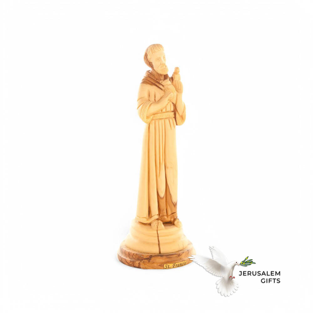 St. Francis Assisi Figurine, Hand Carved Olive Wood from Holy Land 9.8″