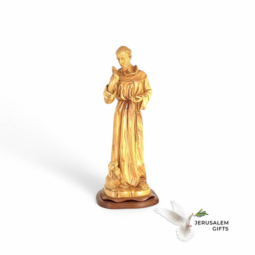 St. Francis Assisi with Birds and Rabbit, 25" Masterpiece from Olive Wood Hand Sculptured in the Holy LandSt. Francis Assisi with Birds and Rabbit, 25″ Masterpiece from Olive Wood Hand Sculptured in the Holy Land